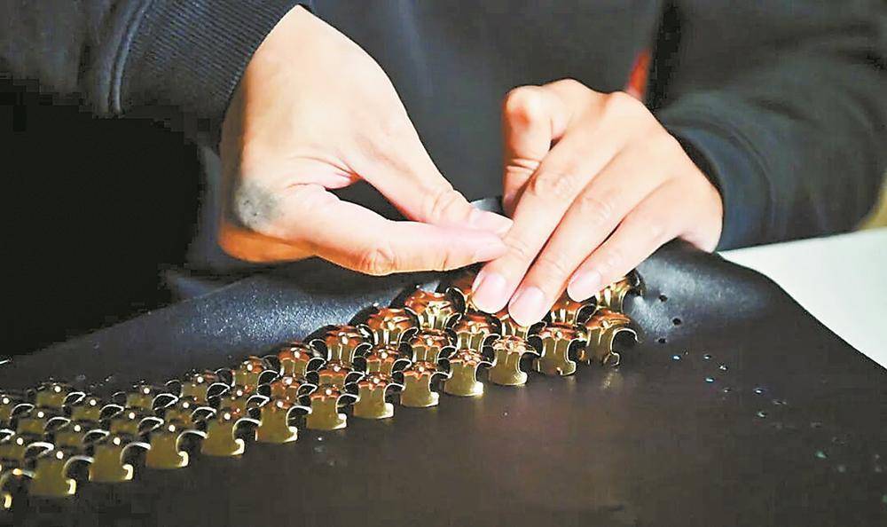r“对中国盔甲了解越深,你就会越喜爱这项传统技巧。”潘刚峰的团队成员黄时君来自南平,几年前,他行动用户购买了初学产物,随后加入团队,从买家转动为从业者。他还诡计了一台激光打版建造,将科技融入传统工艺。