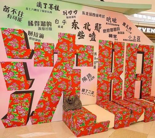 2024年12月18日,在沈阳一市集,由“贼拉滴、异常”等字样东北话和“东北大花”沈阳字样构成的东北话四级查验打卡点引得搭客存身不雅看。