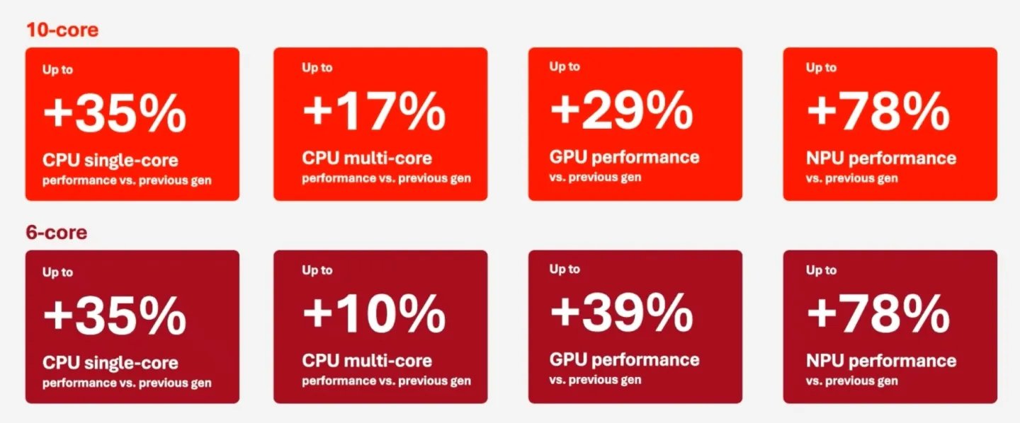不外,X2 Plus 在 GPU 图形性能方面就忘形不少,不论是游戏照旧其他图形任务齐不如 X2 Elite。总体来看,高通暗示,比拟上一代居品,X2 Plus 在 CPU 性能上最高晋升约35%,GPU 性能最高晋升约39%,具体取决于10核或6核型号。