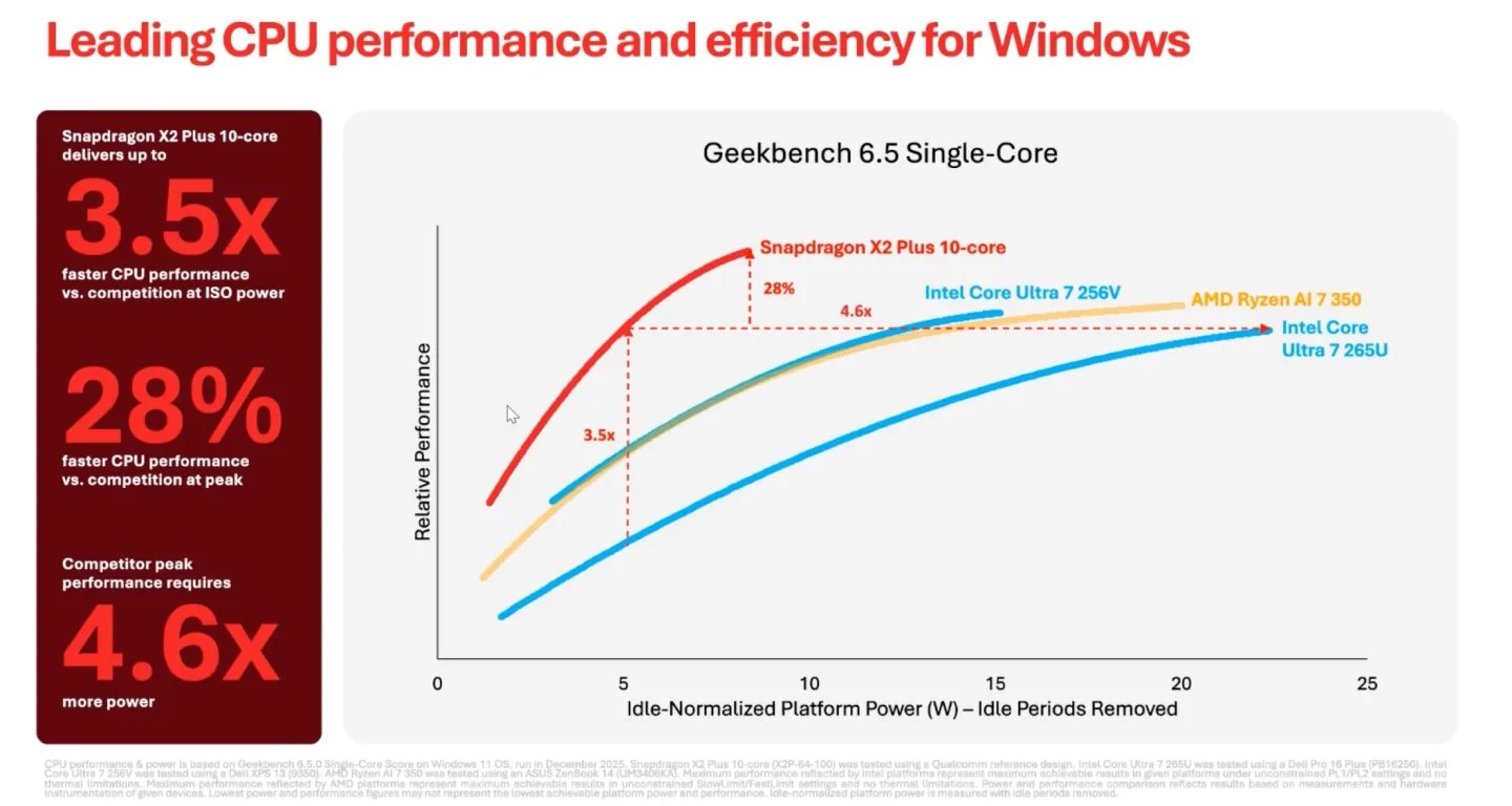 高通对媒体暗示,搭载 X2 Elite 以及 X2 Plus 的个东说念主电脑,预测齐将在第一季度末前后上市。高通这一次并莫得像2024年那样给出明确的价钱快活。其时,高通曾暗示将把 Snapdragon X 条记本的价钱拉低到700好意思元。