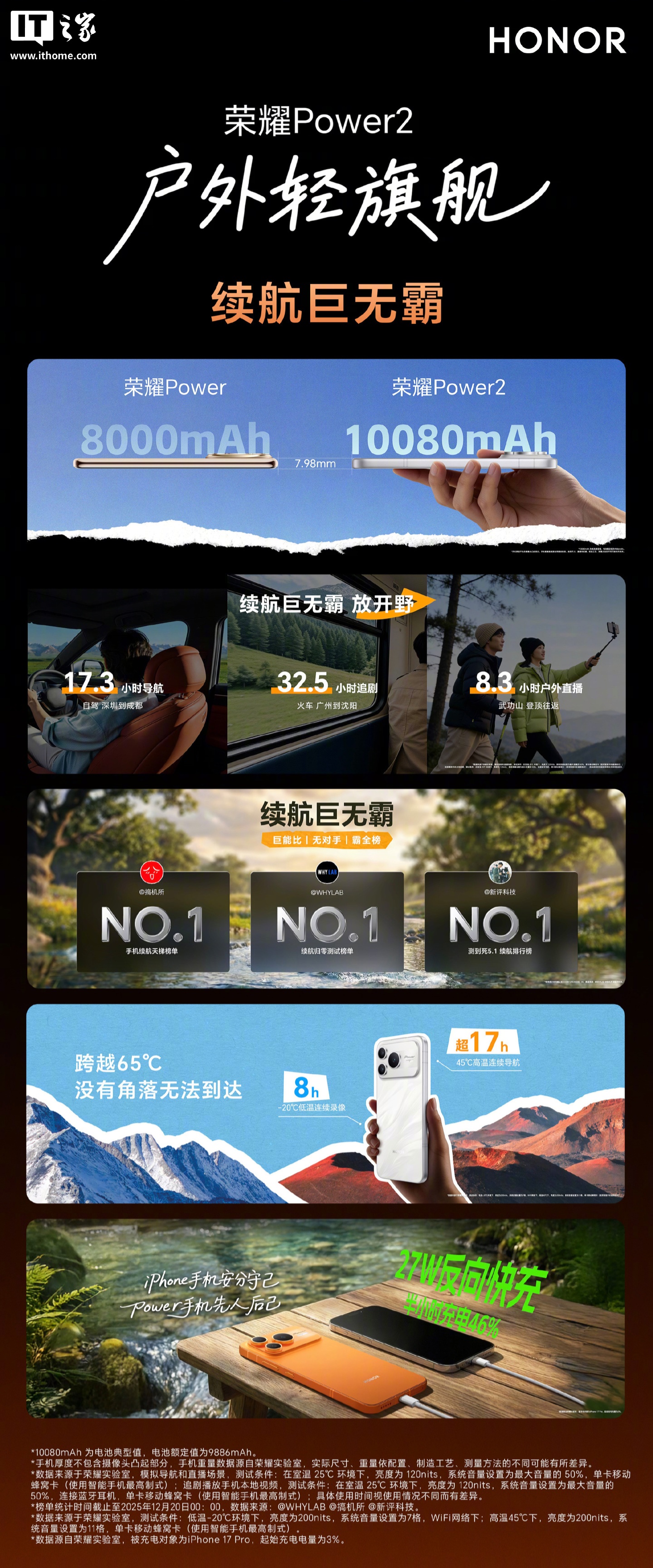 IT之家 1 月 9 日音书,荣耀 Power2 手机将至今天 10:08 开启首销开云Kaiyun·体育官方网站 登录入口,搭载 10080mAh 青海湖电板、第二代荣耀鸿燕通讯,首发天玑 8500 Elite 不休器,售价 2699 元起,IT之家整理产物订价如下: